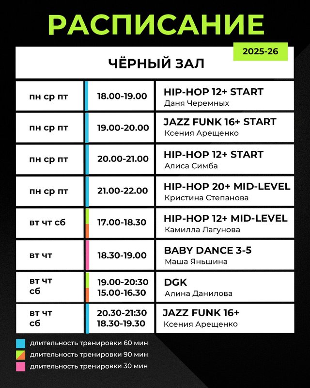 "На наших занятиях по хип-хопу мы изучим все аспекты танца — от базы до различных стилей: спокойного, быстрого, плавного и жесткого. У нас дружеская атмосфера, где вы почувствуете тепло и комфорт. Неважно, какой у вас уровень — я научу танцевать любого!"